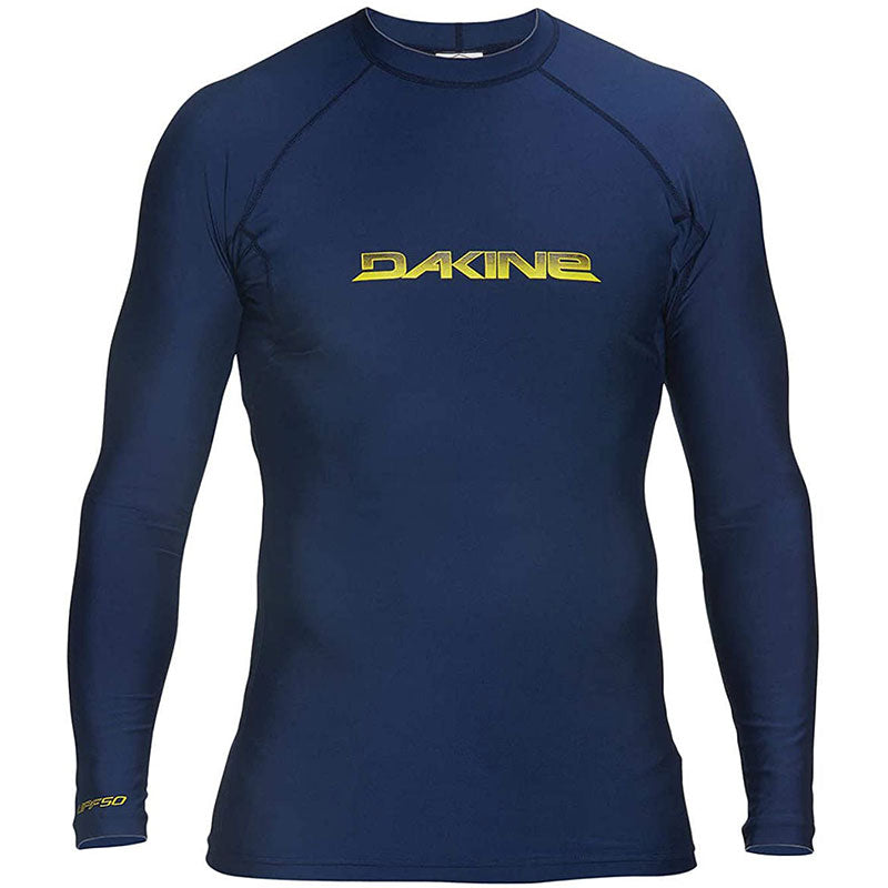 The DaKine Heavy Duty long sleeve rash guard features the DaKine name on the front and flatlock seams. Composed of 6.5oz Lycra, this rash guard is slightly heavier than most, very durable, and has a UPF 50 rating to keep you burn free.